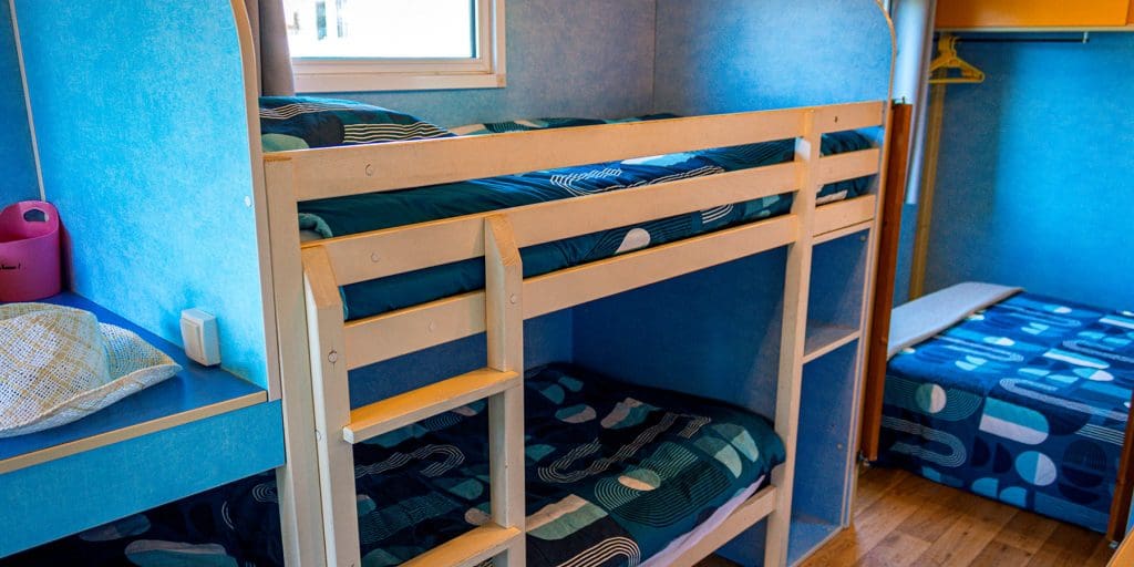- 1 space with two bunk beds 70×190 cm all equipped with a mattress protector, a drawsheet, a duvet and protected pillows.