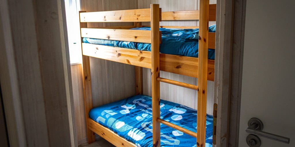 - 1 chambre avec deux lits superposés 80×190 cm équipés chacun d’une protection de matelas, d’une alèse, d’une couette et d’un oreiller protégé.