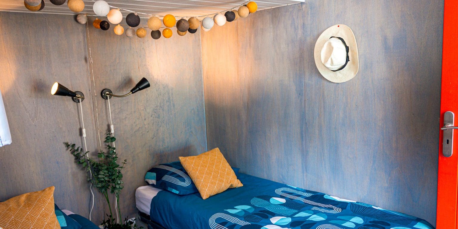 Ce logement atypique en bois de 7,5m² est l’option parfaite pour un couple de randonneurs ne souhaitant pas amener une tente. Ses murs en bois vous prodiguent une isolation pour les nuits fraîches.